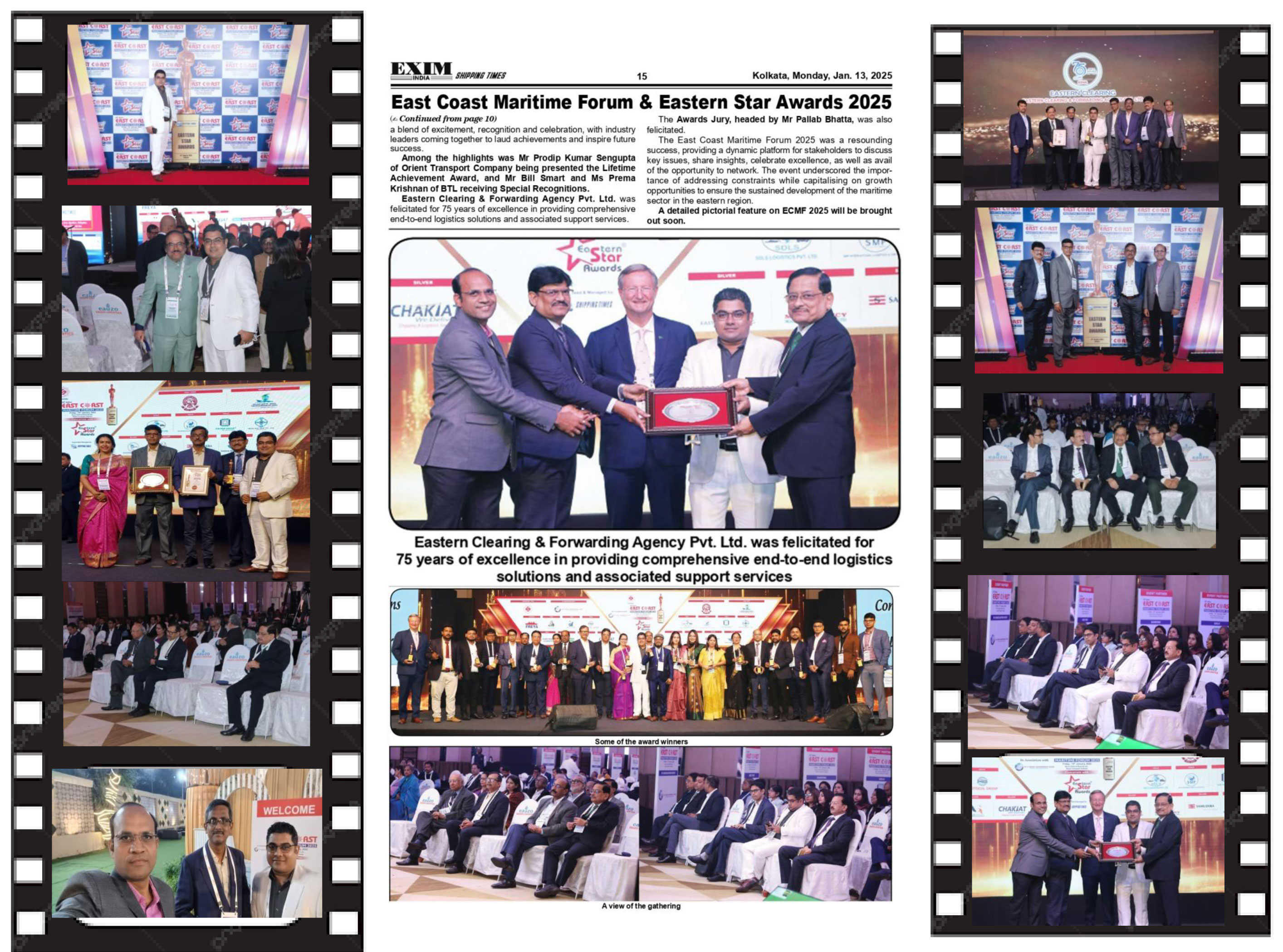 75 YEARS OF EXCELLENCE & LEADERSHIP IN LOGISTICS SOLUTION! FELICITATION BY EAST COAST MARITIME FORUM 2025 ON 10/01/2025 AT ROYAL COURTYARD, NICCO PARK & RESORTS LTD., KOLKATA
